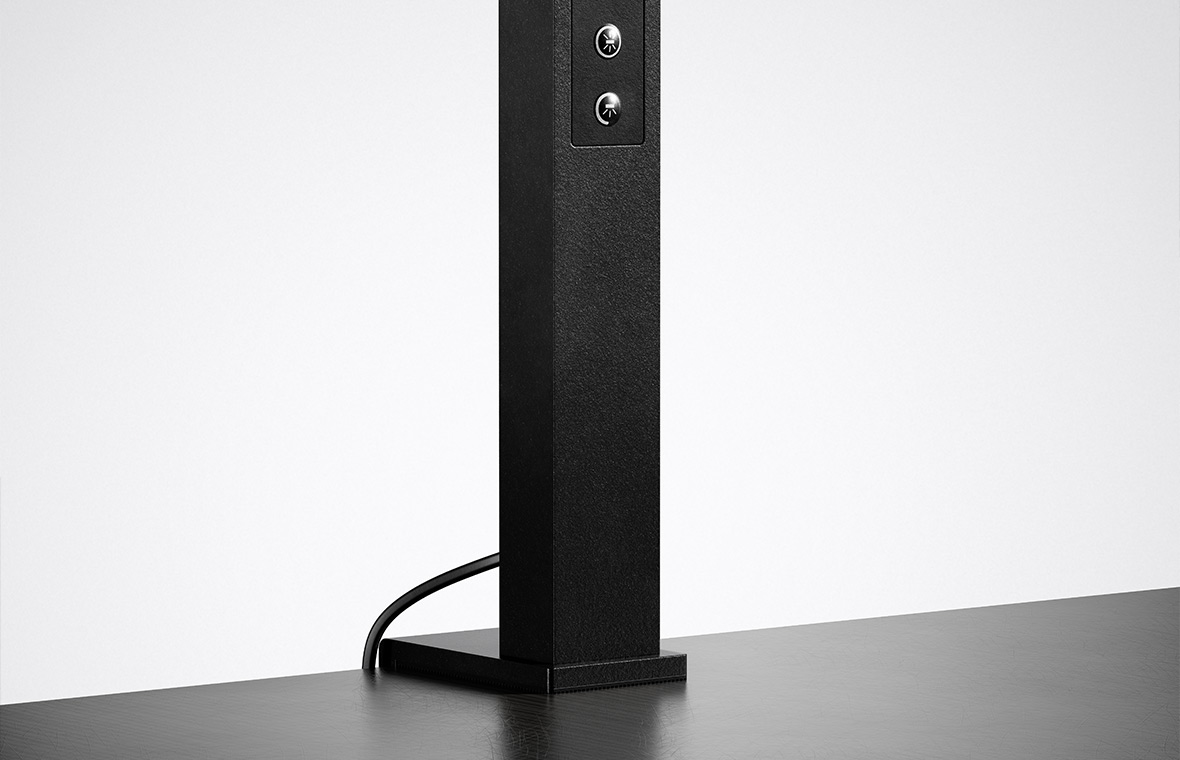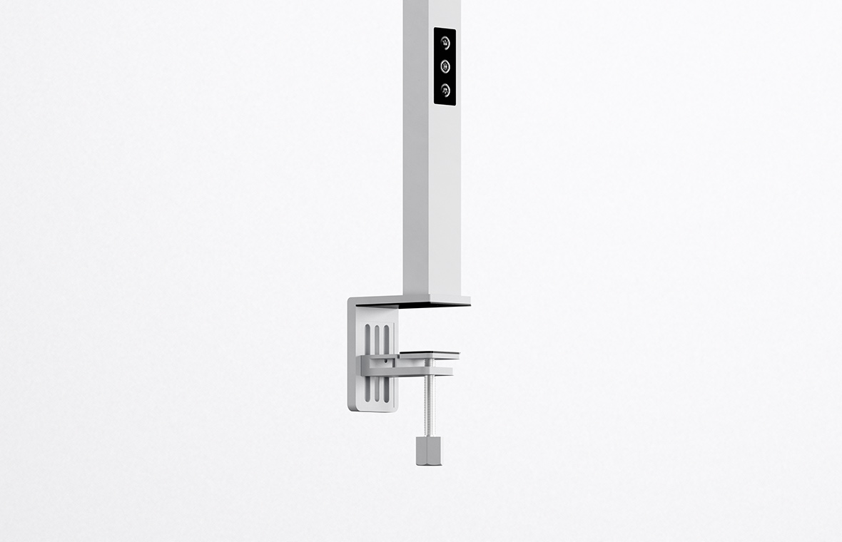 Single, dual or with table clamp: three different versions make Eralia standing and desktop luminaires a flexible lighting solution for all work situations. As a single- or double-head luminaire, Eralia stands securely on a sturdy U-shaped base and can save space when positioned around desk legs. The Eralia clamp-mounted luminaire can also be attached quickly, securely and gently to table tops. The maximum depth is 75 mm.