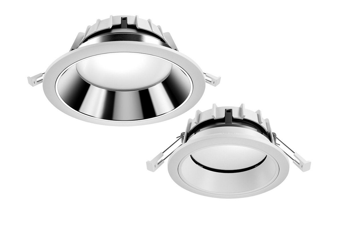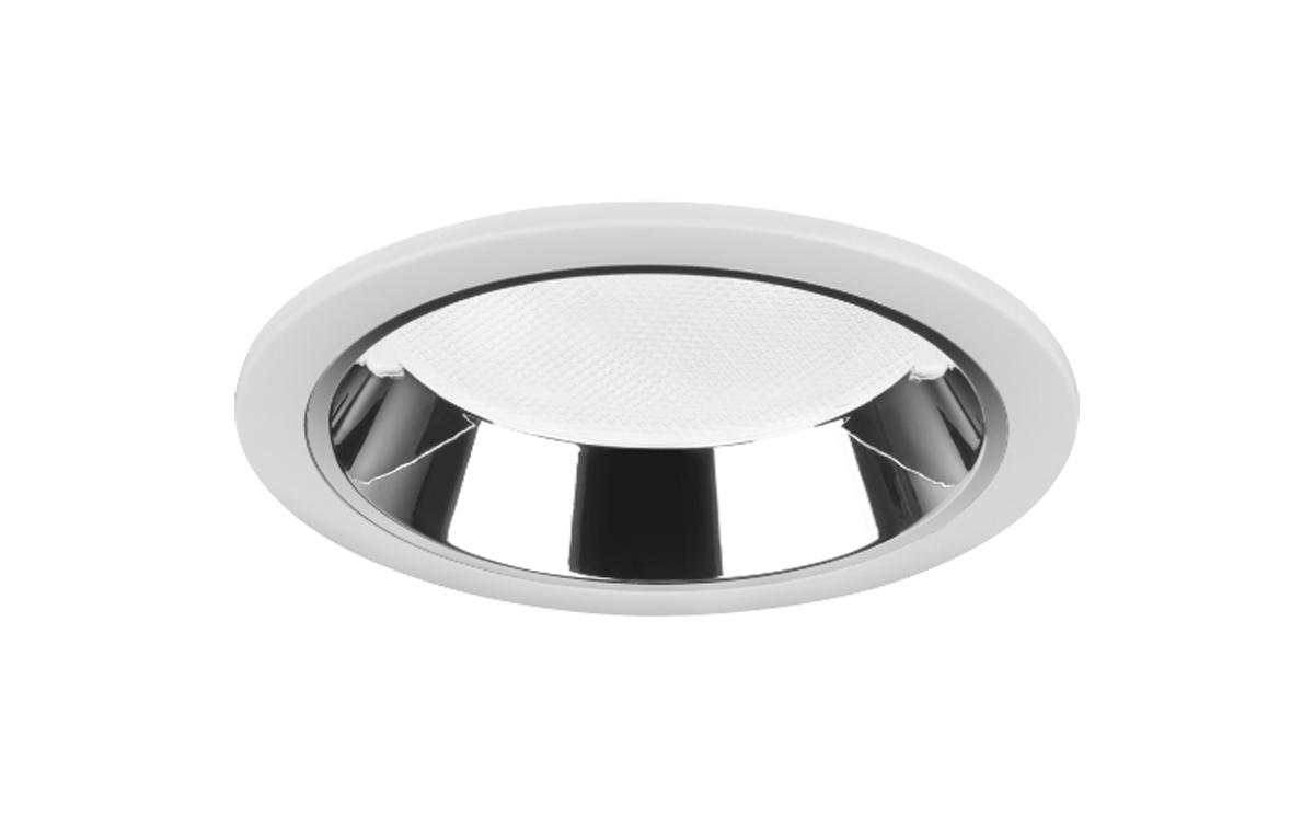 The larger Amatris downlights with diameters of 120 mm or 200 mm are the efficient solution for general lighting, for example in stairwells, foyers, corridors and offices. The wide light distribution enables large luminaire spacing.