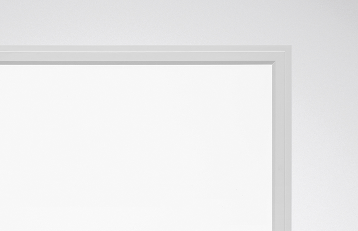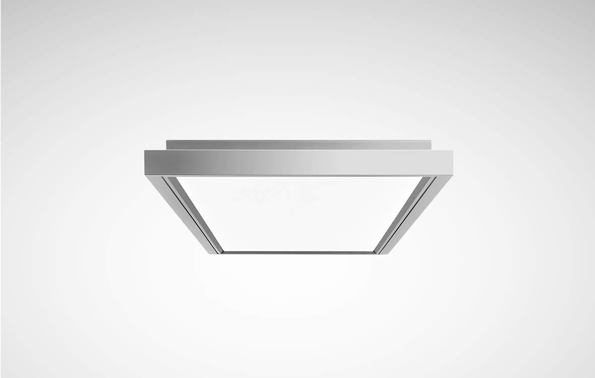 Whether for recessed or surface mounting, installation is even easier thanks to redesigned frame geometries. The frame of the recessed luminaires has been revised so that it fits without problems even in the most difficult installation conditions. This means that the ceiling does not have to be re-sawn in the event of renovation, but that the luminaire fits into the existing ceiling opening of the conventional luminaire. Even during lay in mounting, if the visual mounting rail ceiling is warped or more mounting hooks than usual are used, the luminaire now slides into the ceiling field without any problems.