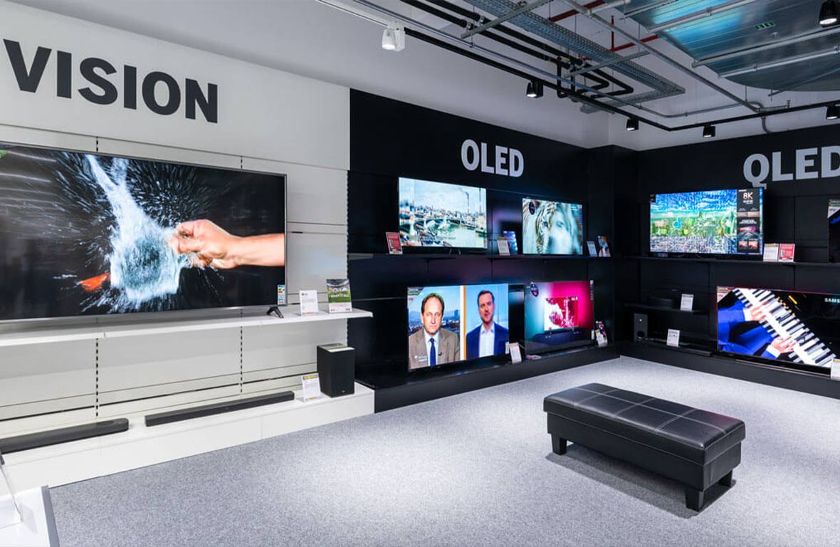 The lighting requirements of DIY, home and electronics markets are often very specific: Electronics markets with high-quality TV sets require particularly good glare reduction. DIY stores, on the other hand, require many high shelf aisles with a fragmented range of goods to be illuminated cleanly and without shadows. No problem at all with our wide range of luminaires.