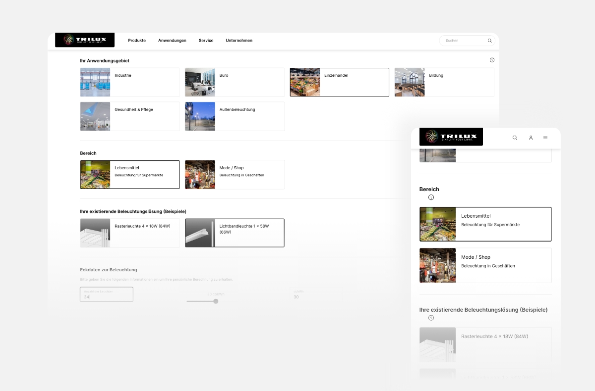 With our intelligent refurbishment wizard, you can find the right replacement product for your outdated conventional lighting in just a few steps. Even if you don't have all the data to hand, the tool will guide you through the selection process. Why don't you try it out right away?