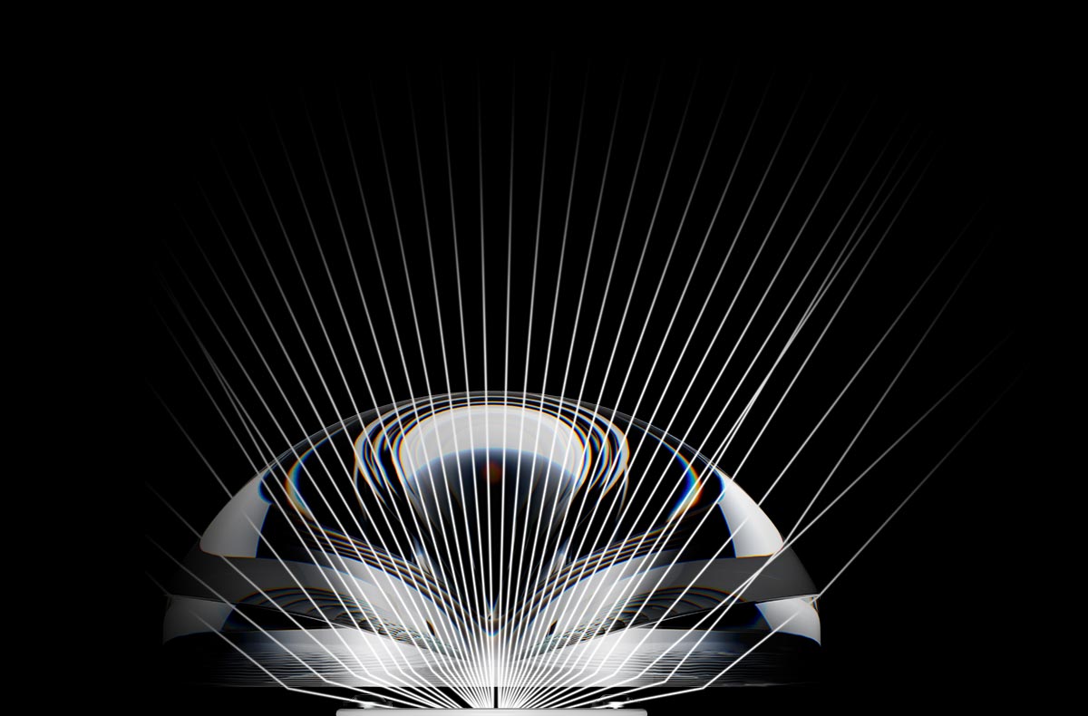 The shape of the lens in combination with the applied structure defines the light distribution and quality of the light image. The shape itself, the clear facets in the light injection area and partially frosted segments of the lens ensure a precise light image without disturbing colour shifts at the edge of the light beam.