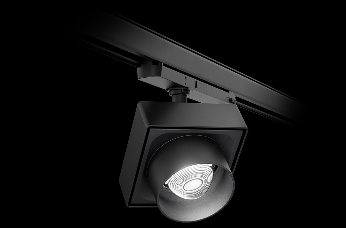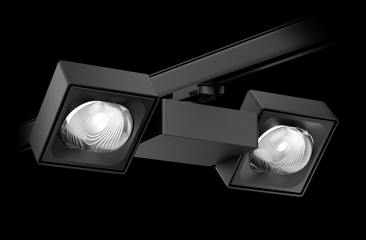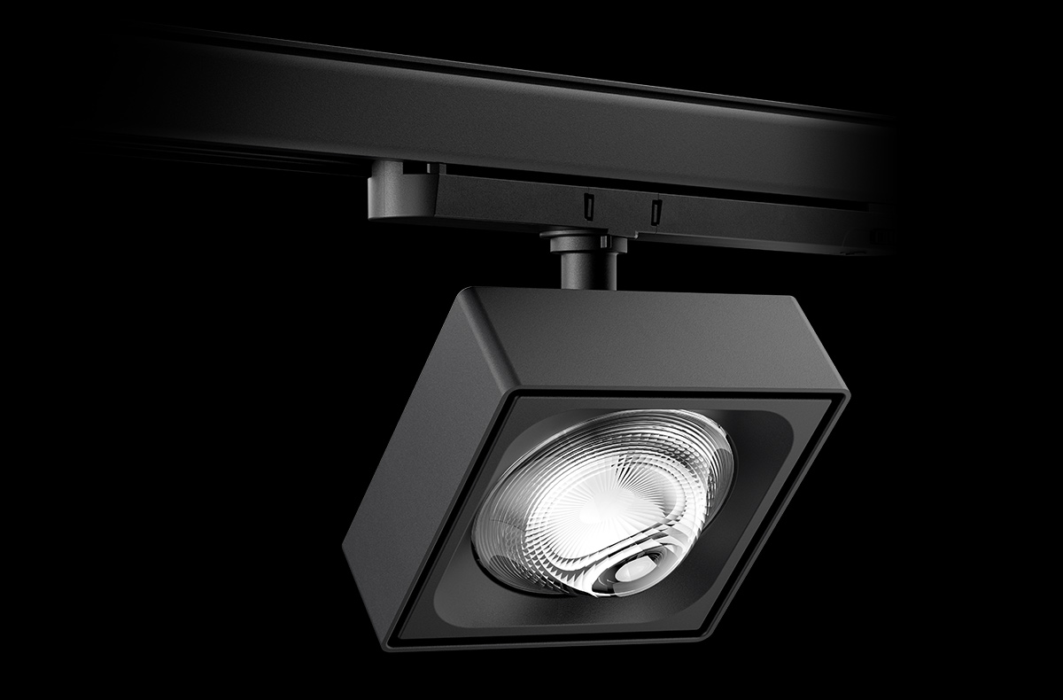 Spotlights as modern design objects with a clear and recognisable shape: YUVIO spotlight heads are square, flat and elegant with precise radii at the edges. Added to this is the striking look of the free-form lenses.
