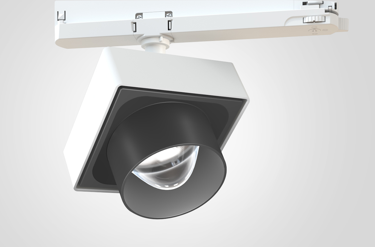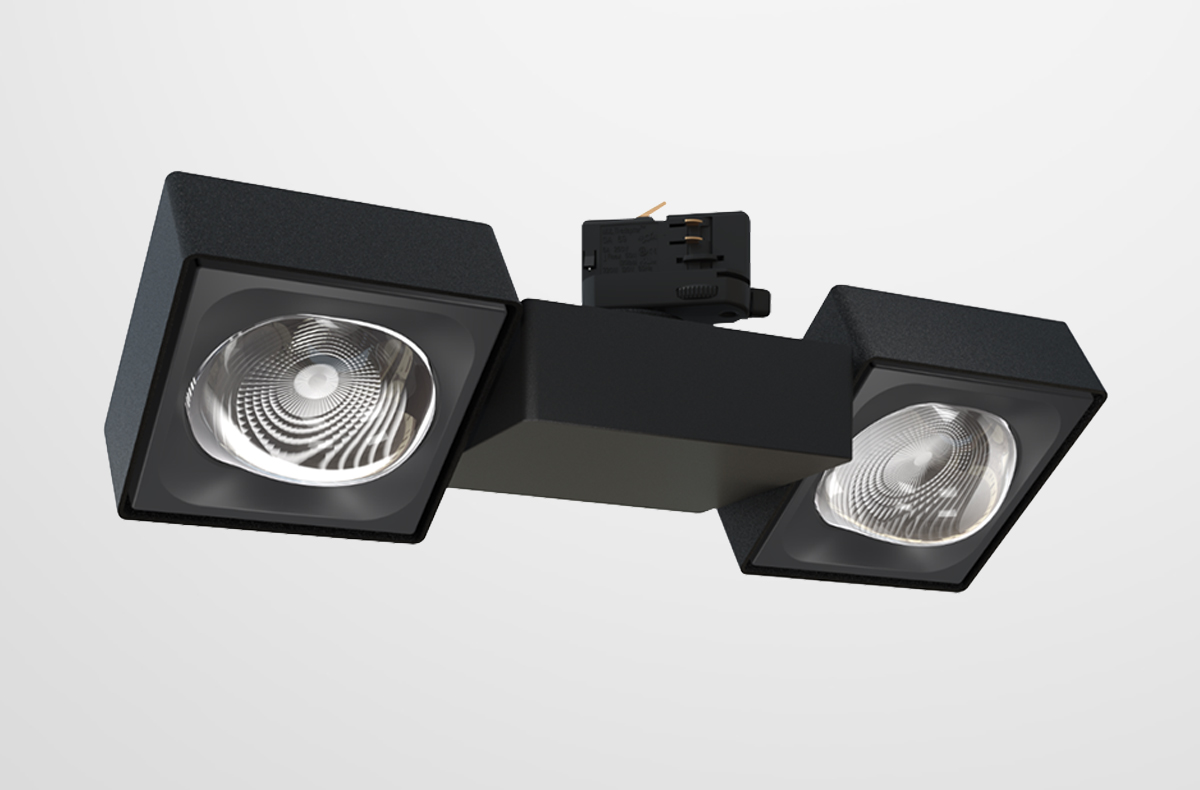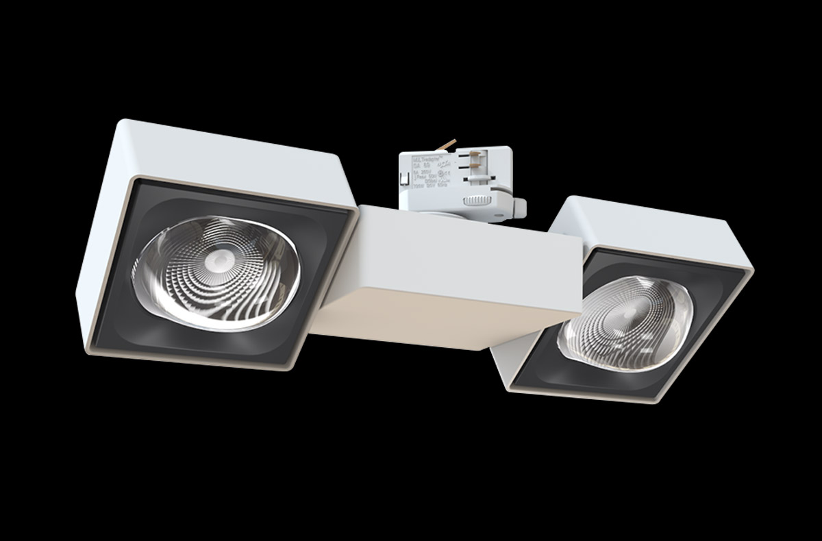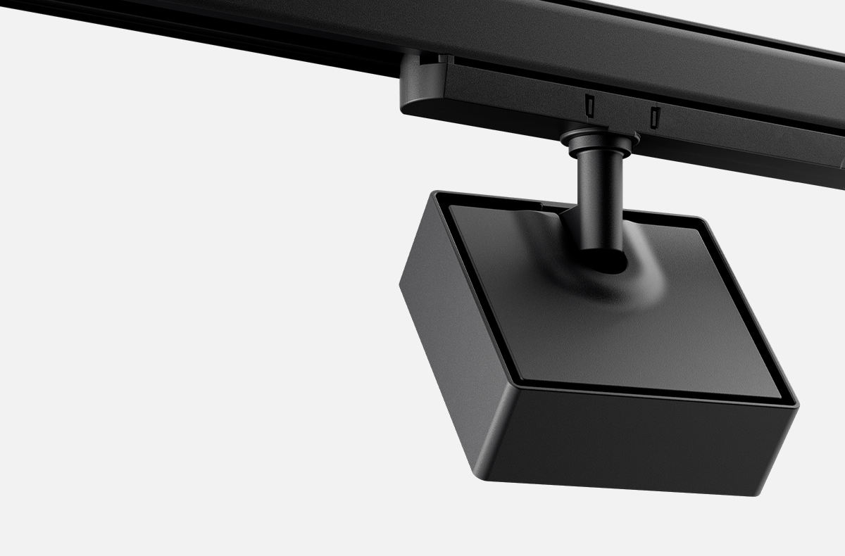 Spotlights as modern design objects with a clear and recognisable shape: YUVIO spotlight heads are square, flat and elegant with precise radii at the edges. Added to this is the striking look of the free-form lenses.