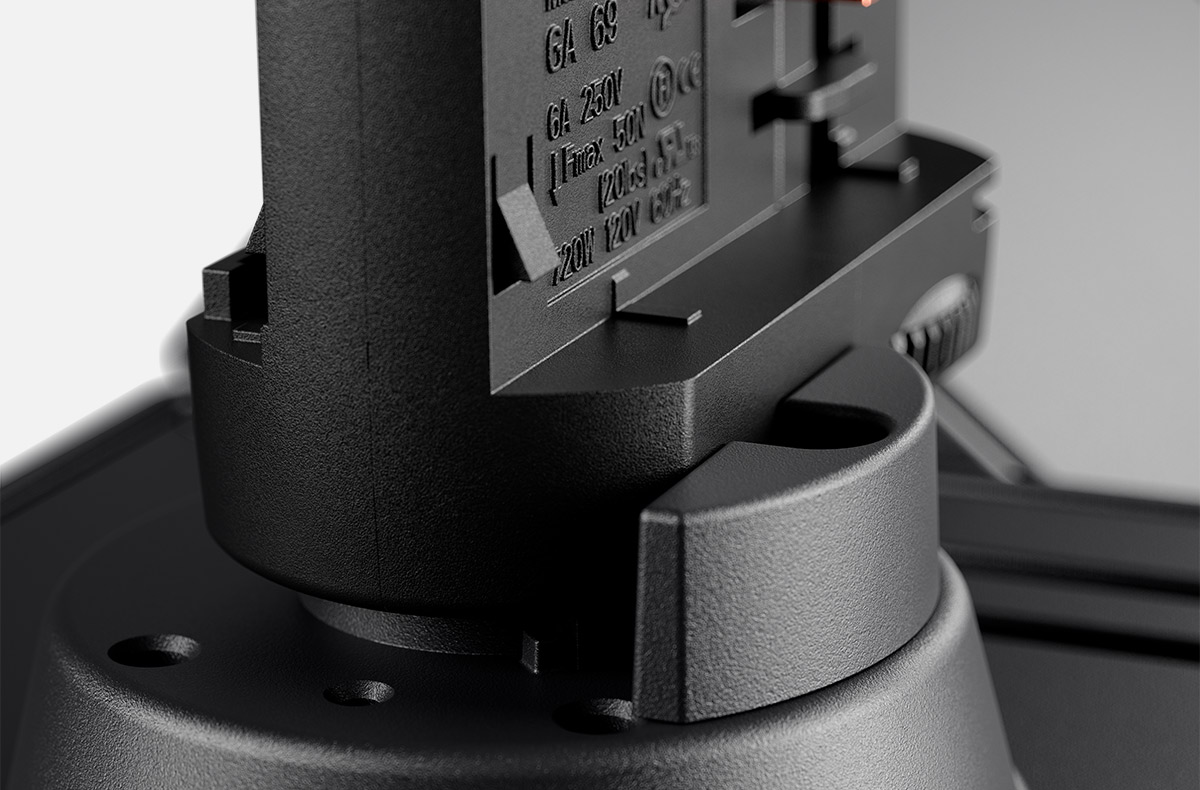A pre-attached lock on the track adapter ensures absolute parallelism to the track. When the lock is removed, Yuvio Twin can be rotated through 314°. Each light head can be swivelled 30° in both directions.