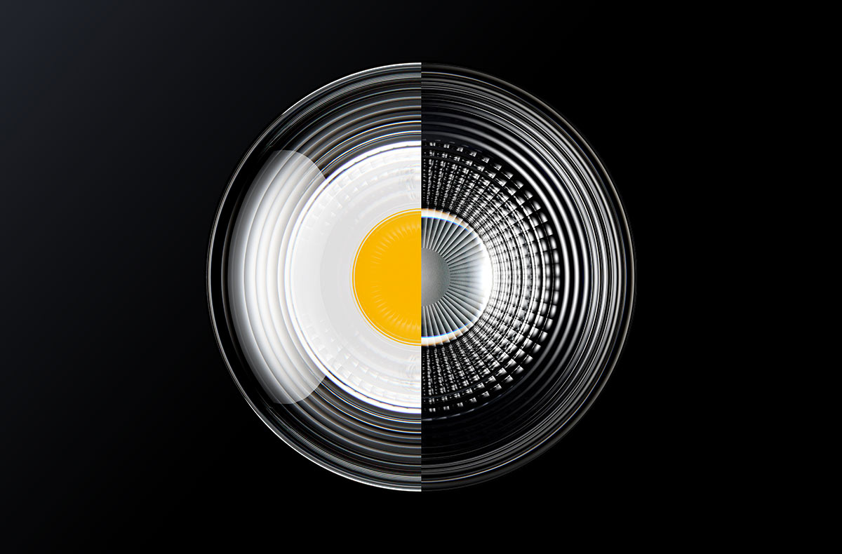 The lighting technology of Yuvio consists of a lens optic with an applied facetted structure. The free-form lenses made of transparent, thermoplastic material not only look different to conventional lighting technology but also feature special properties.
