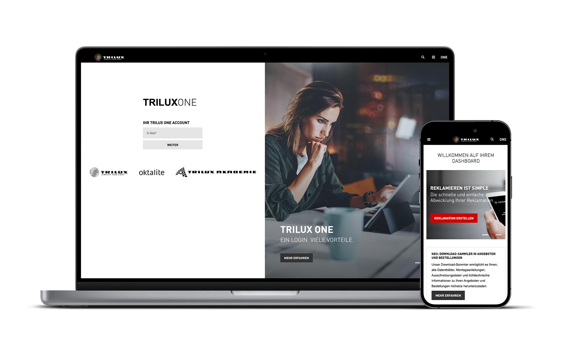 TRILUX ONE is your personal e-business platform. It bundles all important information and supports you in all processes related to your new lighting. From research and planning to ordering and aftersales - with the simply structured platform and many clever tools, you have everything under control in all project phases.