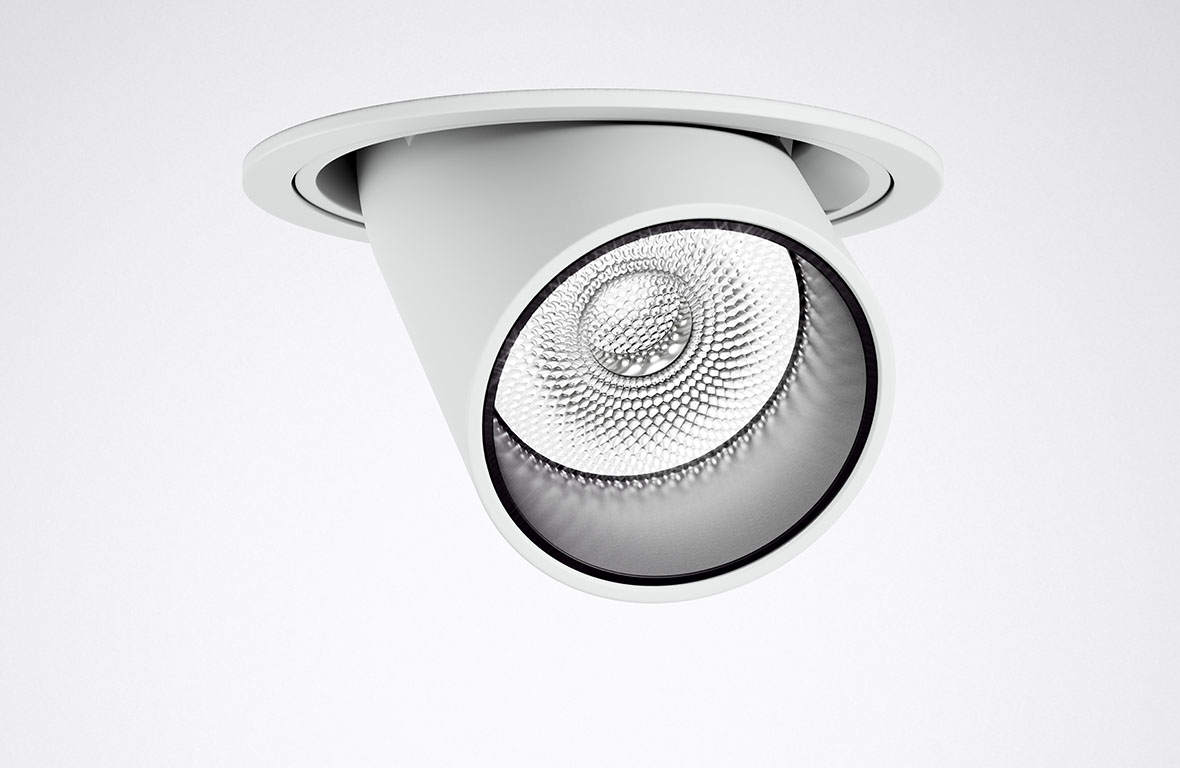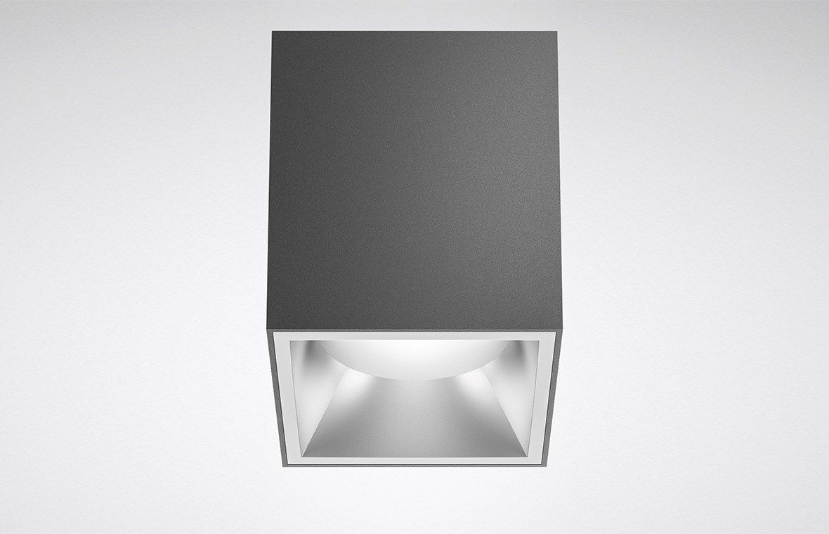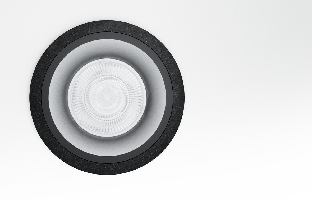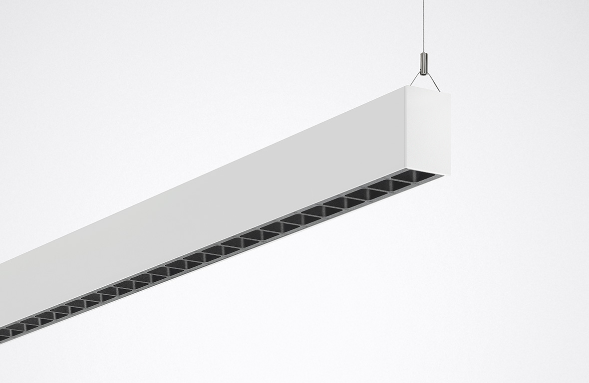 It does not cause glare, and low luminance levels and gentle contrasts at the light emission surface allow the origin of the light to be surmised. The luminaires have a calm and discreet effect. It enables nuanced lighting concepts through various light distributions from a uniform design. This is a principle that works just as well with linear luminaires as with downlights or spotlights.