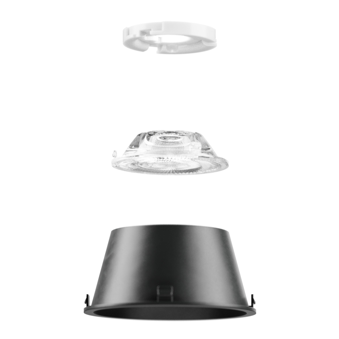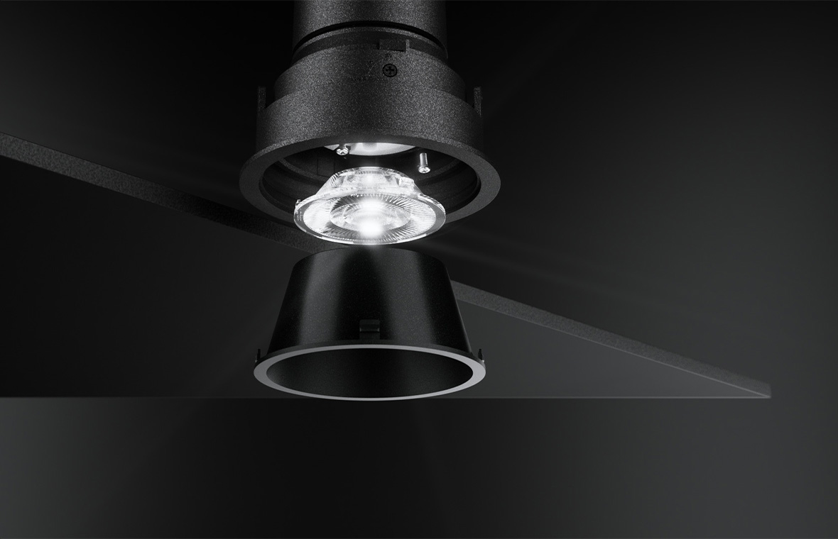 The limiter is not a reflector. For this reason its design can meet aesthetic criteria, for example coordinated with the interior design in white, silver or matt black. Size-optimised – as small as possible, as large as necessary. Luminaire dimensions and limiter depth always have the ideal shape for the respective application.