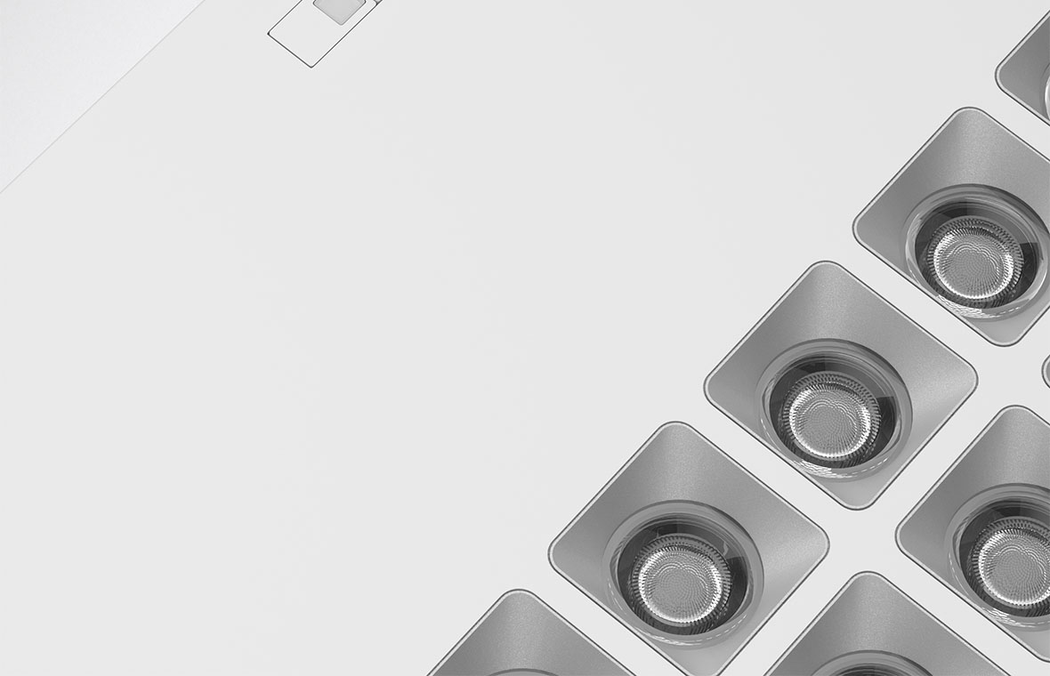 The highly efficient lens optics are designed according to the TIR (Total Internal Reflection) principle and are therefore almost loss-free. The directional character of the light enables up to 60% reduction in connected loads compared to planar lighting.