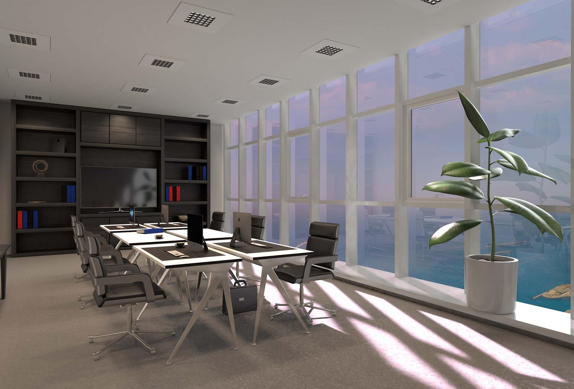 The sun rises. Artificial lighting with a high blue light content ensures cosiness in the room and a focused start to the day.