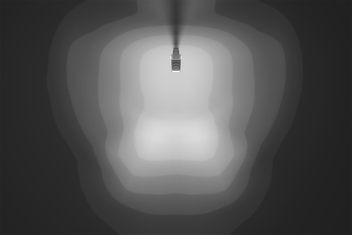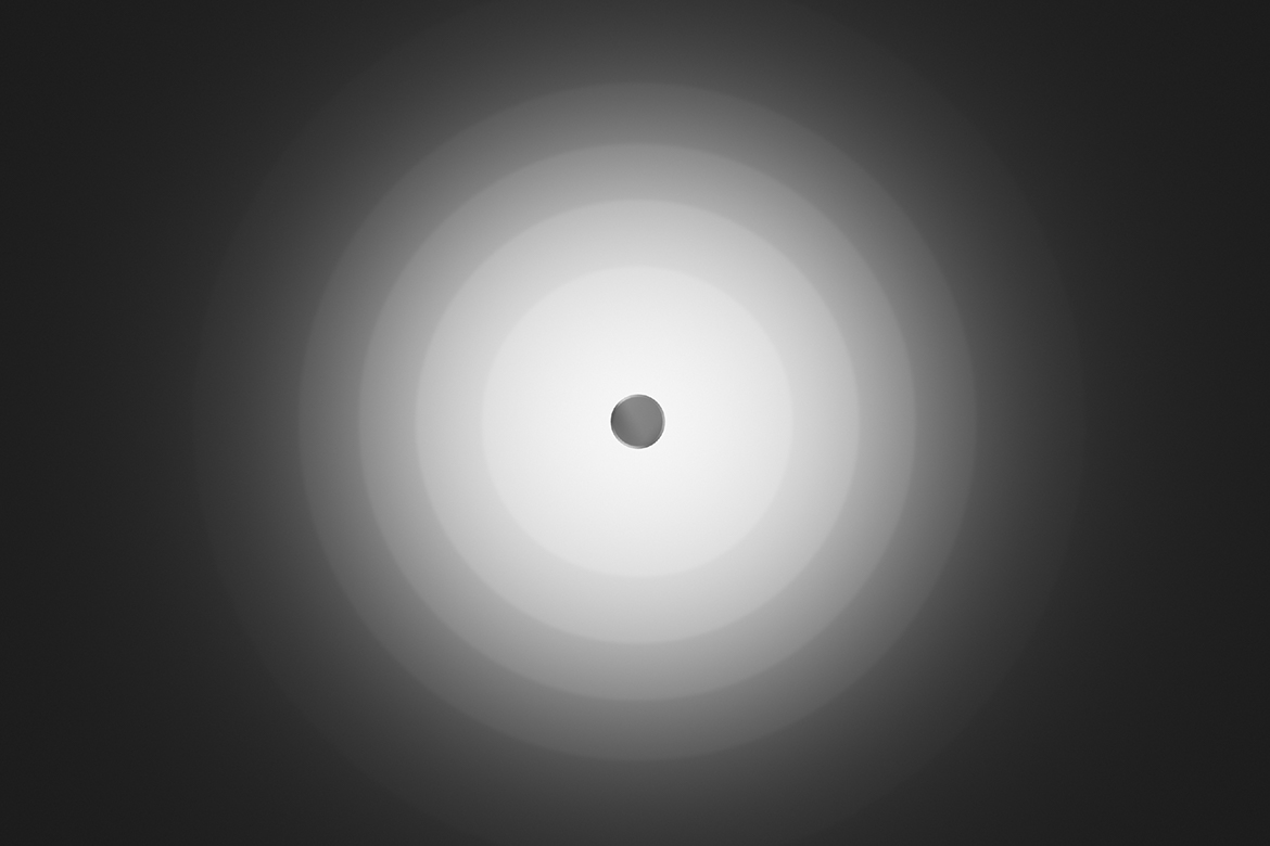Rotationally symmetric narrow distribution for spotlighting, half-value angle 25°.