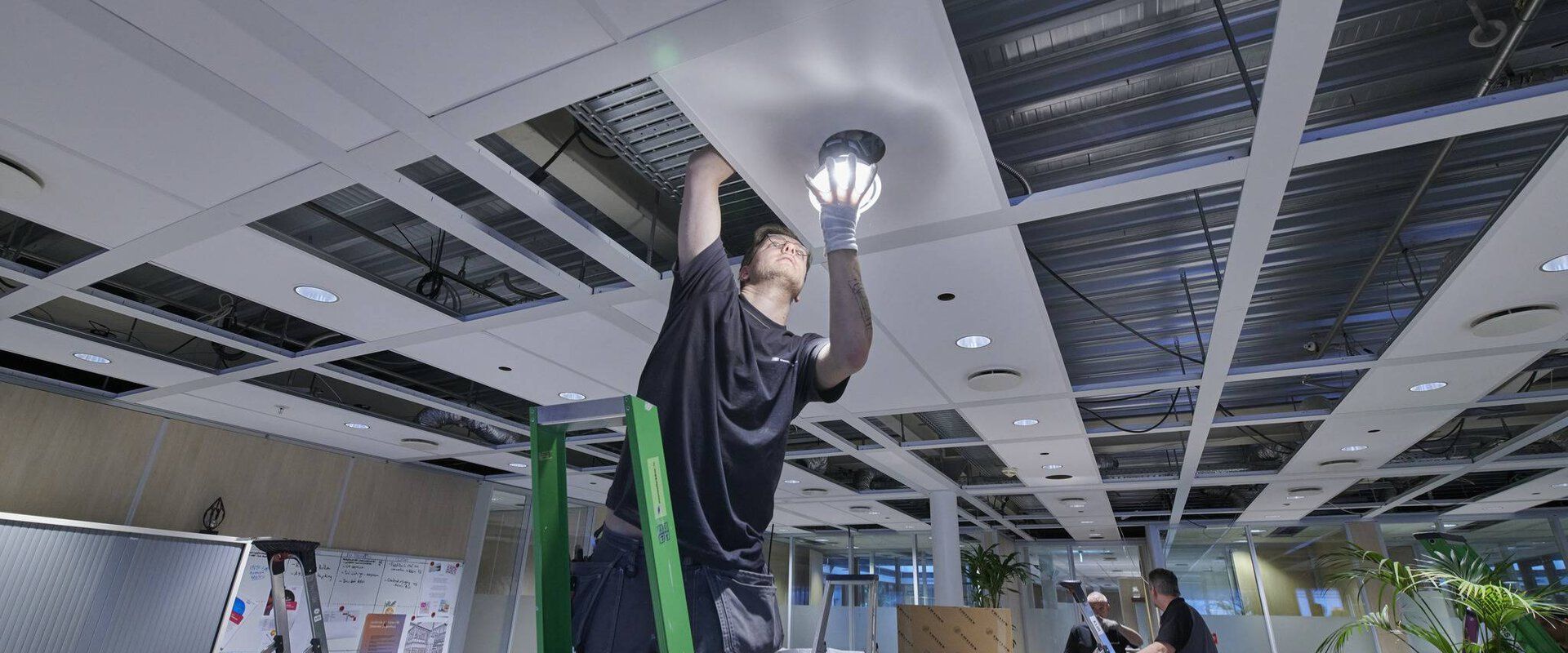 Refurbishment made easy: trainees from Stadtwerke Heidenheim install LiveLink SwarmSens - delivering smart lighting and 85 per cent reduction in energy consumption.